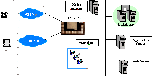 目前, ESE/VSE的主要應(yīng)用在呼叫中心平臺,PHS增值業(yè)務(wù)平臺,如短消息中心,預付費業(yè)務(wù),及其他各種信息處理平臺。