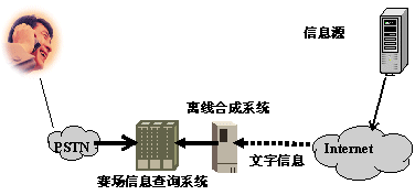 在線合成是指:在用戶呼入后,通過按鍵操作等方式檢索到某段文字信息,在線合成系統(tǒng)將這段文字轉(zhuǎn)化為對(duì)于的語音數(shù)據(jù),播放給用戶收聽。在線合成不僅可以方便地實(shí)現(xiàn)動(dòng)態(tài)信息和海量信息查詢的業(yè)務(wù),也可以使用戶的使用界面更加友好和個(gè)性化。