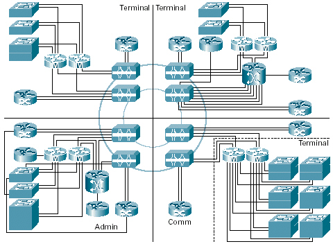 下面的結(jié)構(gòu)圖顯示了該機(jī)場所部署的基礎(chǔ)設(shè)施的拓?fù)浣Y(jié)構(gòu)。