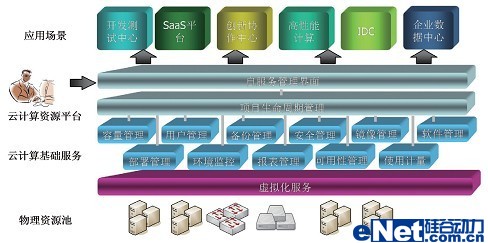 企業(yè)云通過(guò)采用硬件設(shè)備虛擬化、軟件版本標(biāo)準(zhǔn)化、系統(tǒng)管理自動(dòng)化和服務(wù)流程一體化等手段,把傳統(tǒng)的數(shù)據(jù)中心建設(shè)成為一個(gè)以服務(wù)為中心的運(yùn)行平臺(tái),資源的使用方式從專有獨(dú)占方式轉(zhuǎn)變成完全共享方式,運(yùn)行環(huán)境可以自動(dòng)部署和調(diào)整資源分配,實(shí)現(xiàn)資源隨需掌控,從而幫助客戶建立一個(gè)基于業(yè)務(wù)的資源共享、服務(wù)集中和自動(dòng)化的開放數(shù)據(jù)中心。
