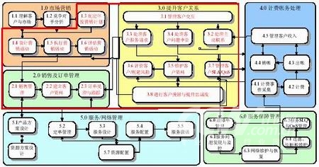 AIOpenCRM將重點(diǎn)支持客戶/市場(chǎng)層面的服務(wù)開(kāi)通、服務(wù)保障的內(nèi)容,具體包含了市場(chǎng)營(yíng)銷、銷售及訂單管理、提升客戶關(guān)系、計(jì)費(fèi)帳務(wù)處理、服務(wù)開(kāi)通管理、服務(wù)報(bào)障管理這六個(gè)高層流程的前三個(gè)。如下圖: