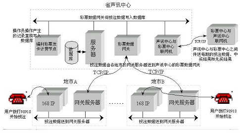 福利彩票業(yè)務一般是由用戶直接在彩票投注站點購買彩票進行投注,由于投注站點數(shù)量較少,在時間、空間上限制著彩票投注業(yè)務的進一步發(fā)展。所謂福利彩票電話投注業(yè)務,即用戶通過電話進入聲訊系統(tǒng),按照系統(tǒng)提示音進行相應的按鍵操作,從而完成福利彩票投注業(yè)務。福利彩票電話投注系統(tǒng)建成后將為用戶提供方便快捷的彩票投注方式,通過電信網(wǎng)將福利彩票的業(yè)務延伸到千家萬戶。