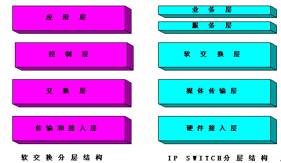 。。SUNTEK IP SWITCH的設(shè)計(jì)概念參考業(yè)界前瞻性的NGN體系,其體系結(jié)構(gòu)與軟交換的分層結(jié)構(gòu)的對應(yīng)關(guān)系如下: