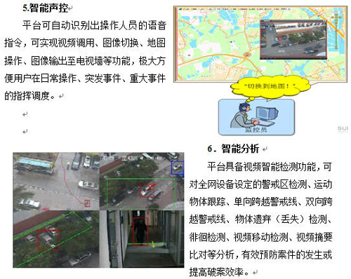 由于海量視頻信息的出現(xiàn),要求平臺(tái)能利用智能視頻技術(shù)來(lái)解決傳統(tǒng)視頻監(jiān)控系統(tǒng)所無(wú)法解決的問(wèn)題。如智能檢索、人臉識(shí)別、車(chē)牌識(shí)別、運(yùn)動(dòng)軌跡跟蹤、行為模式分析等,變“被動(dòng)監(jiān)控”為“主動(dòng)監(jiān)控”,以提升視頻監(jiān)控系統(tǒng)的應(yīng)用成效,降低管理成本。