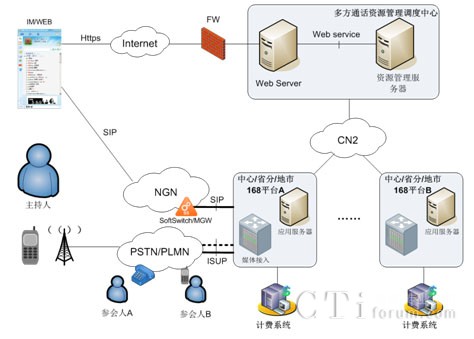 所謂“交互式電話會議”是指由分布在不同地方的與會者,通過固定電話或移動電話或數(shù)字電話終端等通信終端,采用約定的方式(呼入方式或呼出方式)進(jìn)入電話會議狀態(tài),主持人和與會者彼此能自由交談,自由發(fā)言的業(yè)務(wù)。新太交互式電話會議服務(wù)系統(tǒng)對“交互”二字的體現(xiàn)主要表現(xiàn)在語音的交互及控制的交互兩方面。語音的交互是指會議主持人以及與會者不僅可以聽到會議現(xiàn)場別人的發(fā)言,還可以自由地發(fā)表自己的見解;控制的交互性是指會議主持人具有對整個會議的控制權(quán),有權(quán)加入新與會者或強(qiáng)行拆除某與會者,有權(quán)決定是否對會場錄音等。此外,在交互式電話會議的定義上本系統(tǒng)還延伸出多種會議模式,如允許申請發(fā)言的廣播式會議、點(diǎn)名發(fā)言的廣播式電話會議、分組討論會議等。