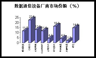 。1)市場規(guī)模: 年初各大運(yùn)營商IP實驗網(wǎng)的開通以及聯(lián)通覆蓋300余城市的IP網(wǎng)絡(luò)大規(guī)模建設(shè),年中ChinaNet大提速與3期擴(kuò)容項目實施以及CNCnet開通,年末CMnet骨干網(wǎng)一期工程上馬、2000年中國數(shù)據(jù)通信設(shè)備市場可謂是熱點(diǎn)頻仍。根據(jù)Frost&Sullivan分析,年內(nèi)網(wǎng)絡(luò)交換機(jī)、訪問產(chǎn)品、 路由器、集線器等數(shù)據(jù)通信主要設(shè)備市場規(guī)模達(dá)到96億人民幣,同比增長36%,數(shù)據(jù)通信設(shè)備市場再次進(jìn)入高速增長期。