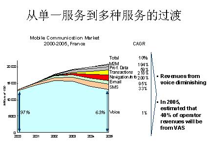 每一個(gè)細(xì)分市場(chǎng)從傳統(tǒng)的基礎(chǔ)服務(wù)逐漸向用戶的應(yīng)用需求靠攏,并以打包的方式向用戶提供解決方案服務(wù),造成增值電信業(yè)務(wù)的價(jià)值鏈越來越復(fù)雜。同時(shí),用戶的需求主要體現(xiàn)在方便性和娛樂上,以移動(dòng)增值業(yè)務(wù)為例,歐美的增值業(yè)務(wù)主要是被滿足用戶的方便性、實(shí)現(xiàn)實(shí)時(shí)通訊需求的即時(shí)短信等為主導(dǎo),而亞洲國(guó)家則普遍在以?shī)蕵饭δ転橹鞯腟MS和移動(dòng)游戲業(yè)務(wù)上潛力巨大。我們應(yīng)該看到,不管以哪種業(yè)務(wù)為主導(dǎo),市場(chǎng)的彈性都普遍增加,市場(chǎng)前景的不確定性增大。其中最顯著的特點(diǎn)為,市場(chǎng)需求不再是恒定的,市場(chǎng)的大小在很大程度上是由運(yùn)營(yíng)商的經(jīng)營(yíng)決定的,與運(yùn)營(yíng)商的業(yè)務(wù)提供方式和促銷的效率密切相關(guān)。這無疑對(duì)運(yùn)營(yíng)商在新業(yè)務(wù)的市場(chǎng)預(yù)測(cè)、業(yè)務(wù)模式選擇和用戶需求的喚起上提出了更高的要求。
