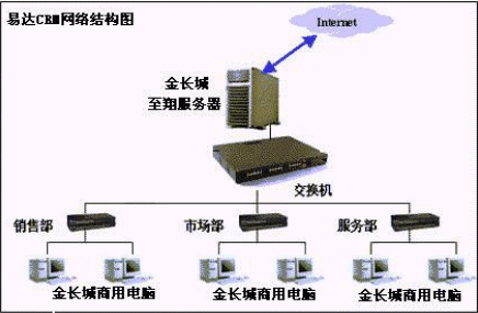 易達(dá)CRM應(yīng)用于小型網(wǎng)絡(luò)環(huán)境(或單機(jī)應(yīng)用),對(duì)于中小型企業(yè)只需建立PC級(jí)局域網(wǎng)絡(luò)環(huán)境即可,同時(shí)可以通過(guò)服務(wù)器聯(lián)入INTERNET,便于異地業(yè)務(wù)人員的數(shù)據(jù)錄入和EMAIL數(shù)據(jù)傳送。(在此易達(dá)CRM與相關(guān)品牌的PC服務(wù)器、PC商用機(jī)建立戰(zhàn)略合作關(guān)系,以較優(yōu)惠的價(jià)格向中小型企業(yè)提供性?xún)r(jià)比很高的全面解決方案包,這是對(duì)中小型企業(yè)用戶(hù)、硬件廠(chǎng)商、易達(dá)軟件三方均有益的解決方案)。