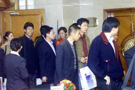 意外之一:預(yù)定的簽到時間是下午兩點,根據(jù)一般與會者都會遲到的"原理",組委會并不著急,沒想到工程師們出于守時的習慣,不少人提前了一、二十分鐘就到達了,簽到處頓時人滿為患。