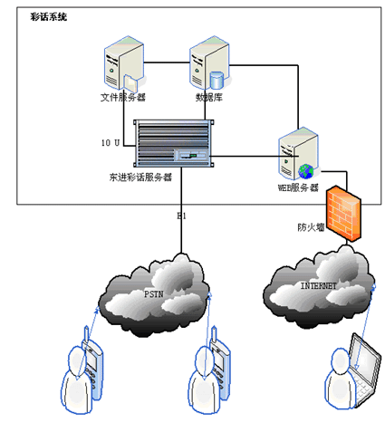 用戶在撥打電話時(shí)可撥打本系統(tǒng)特服號(hào)xxxxx+被叫電話號(hào)碼,系統(tǒng)將接通其指定的被叫電話號(hào)碼,同時(shí)加入背景音樂(lè)功能,用戶在系統(tǒng)接通被叫號(hào)碼后,在與被叫方進(jìn)行通話的過(guò)程中,就可以使用事先設(shè)定的背景了。