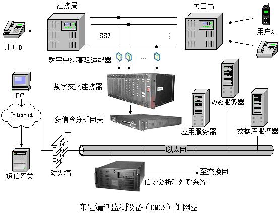 東進(jìn)漏話監(jiān)測設(shè)備(DMCS)采用大容量、高穩(wěn)定的電信級的基礎(chǔ)平臺,其中數(shù)字交叉連接器和多信令分析網(wǎng)關(guān),都采用標(biāo)準(zhǔn)的19英寸機(jī)架設(shè)計(jì),便于客戶的安裝和使用,設(shè)備單平臺最大可同時接入64個E1,平臺利用東進(jìn)公司核心的信令采集技術(shù)、語音媒體處理和交換技術(shù),提供全程中國七號信令,支持ISUP信令方式,具有較穩(wěn)定的信令可靠性和接續(xù)速度。平臺采用與短信網(wǎng)關(guān)連接的解決方案,支持與SMC和SMG兩種連接方式。