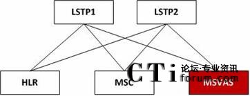 MSVAS平臺可以通過七號信令網(wǎng)與移動核心網(wǎng)中的各個網(wǎng)元進(jìn)行對接,如與七號信令網(wǎng)中的LSTP進(jìn)行對接,通過ISUP、TUP以及MAP對核心網(wǎng)中HLR、MSC、短信中心等網(wǎng)元進(jìn)行訪問,實現(xiàn)移動管理(位置查詢)、呼叫處理(主要是獲取路由信息)、業(yè)務(wù)登記、短消息業(yè)務(wù)等功能,其連接方式如下圖所示: