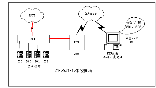 舉個例子,在傳統(tǒng)的網(wǎng)上交流手段下,對于一個在線商戶來說,其客戶如果需要與而且也容易造成客戶流失,F(xiàn)在采用Click&Talk系統(tǒng)后,一個在線的商戶只要將一個Click & Talk的按鈕嵌在在線商店里。世界各地的用戶只需要通過PC,點擊在線商戶的這個按鈕,就能與商戶電話聯(lián)系,或請求在方便的時間給予回撥。通過這種通信模式,世界各地的客戶都能和您保持密切互動的聯(lián)系,而不用擔(dān)心長途電話的費用。還可以實現(xiàn)公司出差人員及分支機借助Click&Talk平臺和公司總部的通話的應(yīng)用,大幅節(jié)省話費成本。