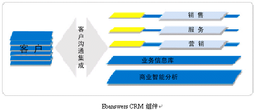 。。作為企業(yè)級客戶關(guān)系全面解決方案,Ebanswers CRM包含了可無縫整合又可獨(dú)立運(yùn)行的三個(gè)功能組件:銷售,營銷,服務(wù)流程自動(dòng)化軟件系統(tǒng);客戶溝通集成信息化方案;深層商業(yè)智能分析。其中客戶溝通層組體是Ebanswers