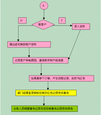 可以根據(jù)訂單上的不同顏色來(lái)判斷流程走到的階段。流程開(kāi)始時(shí)候,訂單的列表中會(huì)產(chǎn)生一條紅色記錄,部門經(jīng)理登錄審核后使該紅色記錄變成黃色,倉(cāng)庫(kù)人員根據(jù)黃色記錄發(fā)貨后使黃色記錄變成綠色。