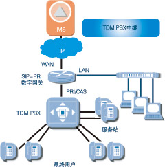 TDMPBX交換機(jī)多采用PRI或中國No.1信令(CAS)。TDM小交換機(jī)通過E1網(wǎng)關(guān)接入IMS系統(tǒng),使小交換機(jī)之后的電話終端用戶可以享受IMS典型業(yè)務(wù)。經(jīng)愛立信系統(tǒng)測試認(rèn)證的E1網(wǎng)關(guān)有Mediatrix和Audiocodes等多家廠商的產(chǎn)品。