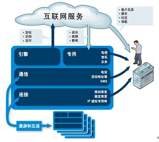 根據(jù)服務(wù)種類的不同,運(yùn)營商正在扮演的角色可以分成4種(見上圖):一是連接性,提供最基本的帶寬;二是通信性,提供語音、短信、彩信等通信服務(wù);三是專用服務(wù),通常是指一些運(yùn)營商給自有用戶提供的專用的融合服務(wù),比如前面提到的AT&T的IPTV服務(wù);四是電信能力引擎,即之前提到的電信能力開放。