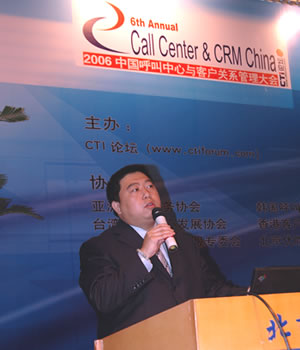 2006年4月3日至5日,2006中國呼叫中心與客戶關(guān)系管理大會在北京國際會議中心隆重召開,以下是K10主題演講實錄:吳畏:各位大家好,我是Intel通信產(chǎn)品中國總代理,北京思安華勝科技有限公司的吳畏,我今天演講的題目是融合通信的革命技術(shù),主機媒體處理,“HMP(主機媒體處理)-CTI產(chǎn)業(yè)的革命技術(shù)”,在這里首先要向大家說明的是,從我們目前市場行業(yè)來看,基本上也不外乎是用編碼搭建服務(wù)器來處理。通過02年到今天在通信產(chǎn)品領(lǐng)域中取得新的突破,可以向大家介紹一下這個技術(shù),我們也把它稱為革命性的。