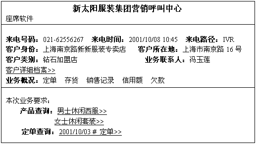 下圖是一個(gè)系統(tǒng)識(shí)別客戶(hù)身份和業(yè)務(wù)要求后在座席電腦上彈出信息處理窗口的例子:
