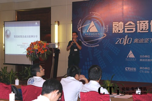 CTI論壇(ctiforum)9月10日消息(記者 楊毅):2010年9月9日奧迪堅在廣州市嘉鴻華美達廣場酒店舉辦的“下一代融合通信平臺華南研討會” 圓滿落下帷幕。本次會議以 “融合通信” 為主題,將最新的由“IPT、IPCC、UC和Mobility”四個部分組成的融合通信技術完美呈現(xiàn)在嘉賓眼前,吸引了業(yè)界眾多知名廠商和媒體,并得到了奧迪堅在各個行業(yè)的新老客戶的積極響應和參與。通過奧迪堅的精彩主題演講、現(xiàn)場的情景秀表演和眾多案例分享等多種形式,與合作伙伴及嘉賓共同探討融合通信技術該如何發(fā)展、解讀渠道新政策、同時更加深入了解奧迪堅產(chǎn)品,提高合作伙伴在市場上的競爭力。CTI論壇(www.camillecerf.net)獨家承辦此次會議,并進行全程報道。
