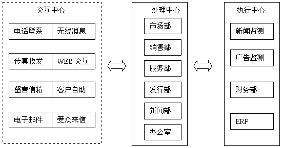 大多數(shù)媒體單位都提供自己的新聞線索熱線電話,廣告熱線電話,許多媒體擁有自己的宣傳網(wǎng)站,有的媒體單位率先建立起呼叫中心,提供7*24的服務(wù)。有些觀點錯誤地認為CRM是呼叫中心的附屬品,因而不能充分發(fā)揮CRM的強大功效,讓整個單位以客戶為中心協(xié)同運作,提高競爭力。