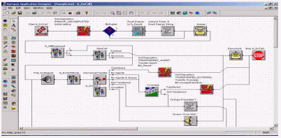 Apropos應(yīng)用程序設(shè)計是一個基于GUI的先進的電話PIL版本。呼叫流曲線圖通過放置和連接TeleObjects被建立,在格子之上的圖線代表各種各樣的呼叫流功能。當(dāng)數(shù)據(jù)被保存時,因為PIL代碼,呼叫流的圖線會被自動地產(chǎn)生。然后這個合成的結(jié)果通過在Apropos服務(wù)器上被運行來實現(xiàn)改變呼叫處理系統(tǒng)。