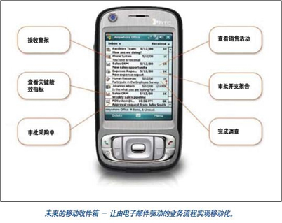 目前,無線電子郵件已經(jīng)成為最受移動(dòng)設(shè)備用戶歡迎的應(yīng)用:它是一種簡單而高效的方法,工作人員可以隨時(shí)隨地保持聯(lián)系,進(jìn)行溝通。然而,要讓工作人員在戶外保持像使用臺(tái)式計(jì)算機(jī)那樣的效率,無線電子郵件僅僅邁出了第一步。全天候的移動(dòng)執(zhí)行力要求即使員工不在辦公室,也必須保證業(yè)務(wù)的連續(xù)性。由電子郵件驅(qū)動(dòng)的業(yè)務(wù)流程,例如采購單、銷售訂單審批或租用申請(qǐng)都需要迅捷的行動(dòng),但目前這些流程只能借助臺(tái)式或便攜式計(jì)算機(jī)來完成。