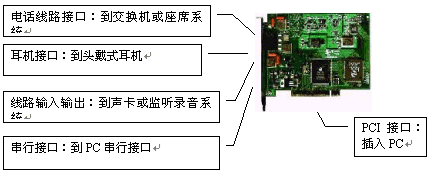 IN和LINE OUT接口,與聲卡配合實(shí)現(xiàn)語音錄放;計(jì)算機(jī)通過串行口實(shí)現(xiàn)對(duì)座席卡的控制。