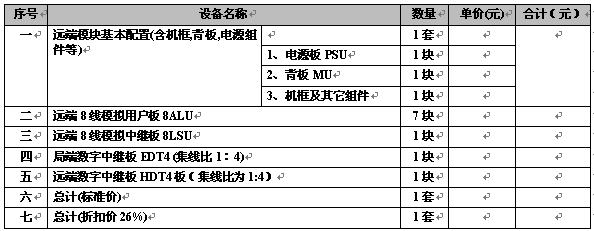 1.單套遠(yuǎn)端模塊主機(jī)(128門(mén)容量,帶主叫模擬用戶門(mén),模擬中繼路)