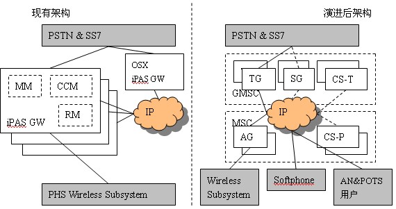 GW軟件改造而來(lái),只需新增CS-P即可?偟膩(lái)說(shuō),核心網(wǎng)的演進(jìn)只是增加CS-P、擴(kuò)容CS-T、原有的iPAS GW軟件升級(jí)為T(mén)G/AG,就可以建立其一個(gè)具有多種終端接入能力的開(kāi)放性多媒體VoIP移動(dòng)軟交換網(wǎng)絡(luò),而原有的PHS系統(tǒng)功能又不會(huì)受到影響。