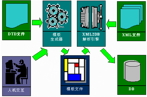 除了直接采用軟件包中包括的兩個圖形化工具以外,用戶還可以根據(jù)自己的需要用xml2db.jar提供的接口來開發(fā)自己的應用程序、中間件或Javabean組件等。