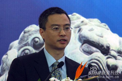 圖為:2009年第二屆中國(guó)城市信息化高峰論壇暨經(jīng)濟(jì)和信息化城市巡展啟動(dòng)大會(huì)現(xiàn)場(chǎng),微軟MBS大中華區(qū)總經(jīng)理孫志偉發(fā)言。