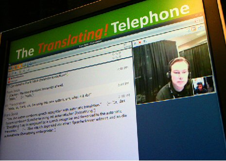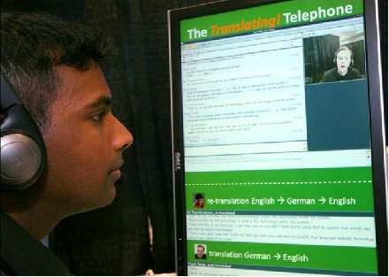 Thambiratnam說:“當多種不同背景的人需要一起交流時,我們的技術(shù)就能提供非常大的便利。”Thambiratnam用同聲傳譯電話展示了這樣一種的情景:Thambiratnam說英語,他要給他的德國籍經(jīng)理Frank