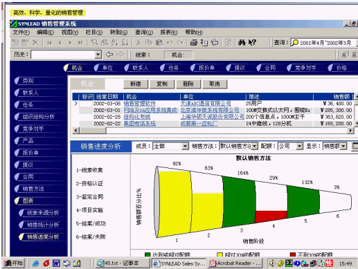 國內軟件企業(yè)在實踐中感受客戶需求,同時接受根據國外CRM的思想,摸索創(chuàng)造出CRM產品,比較典型的是廣智銷售型CRM。廣智公司是廣東比較成功的圖書軟件的開發(fā)商,在圖書軟件的推廣過程中遇到客戶關系管理的問題,然后研發(fā)了廣智銷售型CRM。