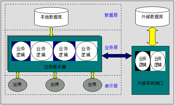 系統(tǒng)軟件體系結(jié)構(gòu)采用C/AS/DS三層結(jié)構(gòu),如下圖,客戶端通過應(yīng)用服務(wù)器上的業(yè)務(wù)邏輯訪問所需數(shù)據(jù)源來實(shí)現(xiàn)相應(yīng)的業(yè)務(wù)功能。在應(yīng)用服務(wù)器軟件設(shè)計(jì)開發(fā)中,采用面向?qū)ο蟮姆椒,將業(yè)務(wù)邏輯封裝成類,使系統(tǒng)更具靈活性和擴(kuò)展性。