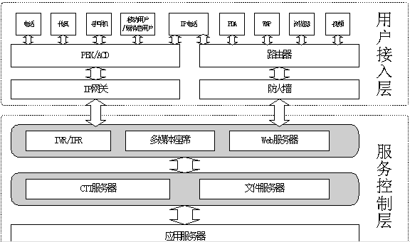 即多媒體客服中心的接入端,包括IVR流程、人工坐席等,它是用戶進入多媒體客服中心客服系統(tǒng)的入口,它將直接面對用戶并收集各種信息。支持電話、傳真、電子郵件、WEB訪問、WAP、PDA、IP電話、網(wǎng)絡電話、視頻電話等多種方式接入。