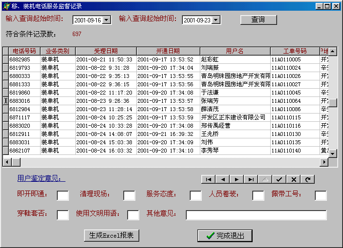 裝、移機(jī)服務(wù)監(jiān)督回訪實(shí)例: