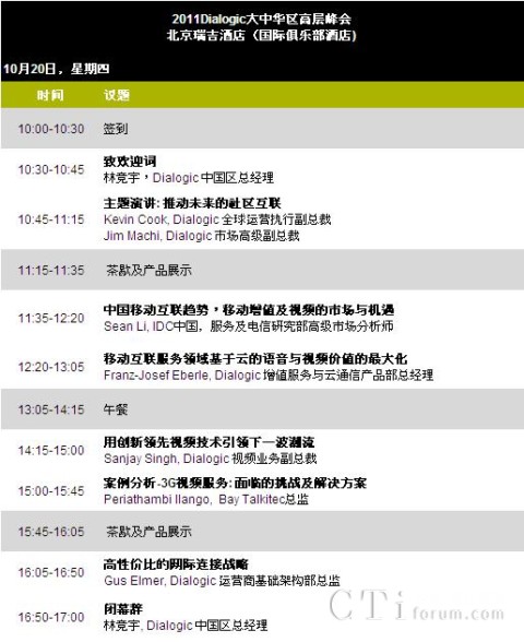 “Dialogic中國客戶高層峰會(huì)”10月20日在京舉行 2011-10-17