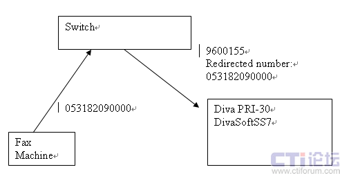 Dialogic Diva SS7傳真解決方案簡介:以往的傳真運(yùn)營在處理接收傳真的時(shí)候都是通過提供一個(gè)接入平臺(tái)號(hào)(例如山東網(wǎng)通的商務(wù)新動(dòng)力為9600155),然后通過語音提示輸入傳真信箱號(hào)。這樣做的缺點(diǎn)在于對于所有的客戶來說接入號(hào)碼都是統(tǒng)一的,不能滿足個(gè)性化需求。有一些客戶不想失去原有的傳真機(jī)號(hào)碼。希望網(wǎng)絡(luò)傳真系統(tǒng)能夠綁定他們原來的傳真?zhèn)髡鏅C(jī)號(hào)碼。例如某客戶原有的號(hào)碼是053182090000,通過號(hào)碼綁定,當(dāng)其他用戶向他發(fā)傳真的時(shí)候,撥打的號(hào)碼是053182090000,但是此呼叫會(huì)被呼轉(zhuǎn)到9600155。傳真平臺(tái)根據(jù)原始被叫號(hào)來接收傳真。原有的基于PRI的解決方案不能解決原始被叫號(hào)的傳送問題,所以必須借助SS7網(wǎng)絡(luò)才能實(shí)現(xiàn)?蛻魮艽053182090000,呼叫被呼轉(zhuǎn)到9600155.在Redirected