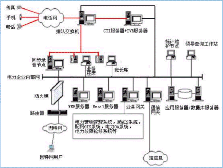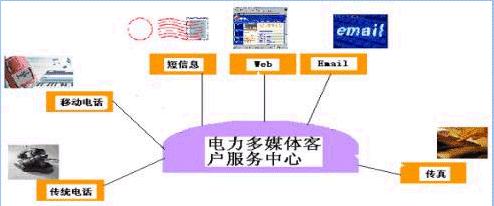 。。用戶利用電話、傳真、電子郵件、因特網、手機、網絡電話等撥打某一特服號碼(如95598)進入電力多媒體客戶服務中心系統,本系統依托電力企業(yè)各類業(yè)務技術支持系統,通過人工受理或自動語音服務等方式為各類客戶提供全天24小時不間斷的電力服務;形成了對外服務于用戶的無形窗口,對內管理、分析、決策系統相結合的新型客戶服務中心。