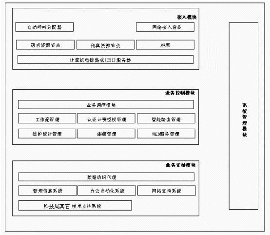 系統(tǒng)管理模塊提供對全系統(tǒng)完善的設(shè)備管理、網(wǎng)絡(luò)管理、運營維護(hù)管理、服務(wù)質(zhì)量管理、業(yè)務(wù)信息管理及決策分析等功能,幫助科技局客戶服務(wù)中心運營者用好系統(tǒng),把握市場動態(tài),不斷提高服務(wù)質(zhì)量。