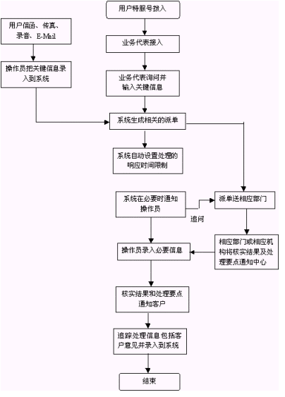 投訴舉報(bào)的受理可以自動(dòng)完成,提示用戶輸入投訴的部門和工作人員的代號(hào)。也可以人工完成,直接將投訴對(duì)象告訴話務(wù)員。