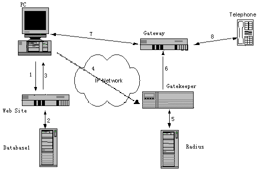 IP800服務(wù)做為先進(jìn)科技的具體應(yīng)用,以分組語(yǔ)音、語(yǔ)音編碼和壓縮、QoS等技術(shù)為核心,采用了國(guó)際標(biāo)準(zhǔn)H.323協(xié)議。系統(tǒng)由關(guān)守、網(wǎng)關(guān)、網(wǎng)管服務(wù)器、計(jì)帳服務(wù)器、檢測(cè)服務(wù)器、緩沖服務(wù)器、呼叫服務(wù)器、RS服務(wù)器等模塊組成,參考下圖: