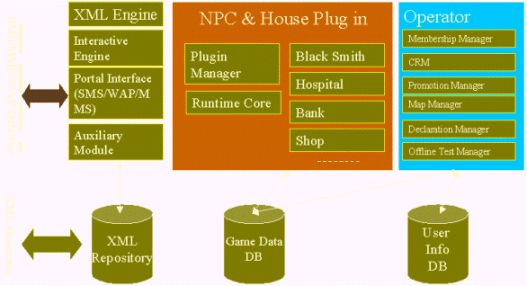 基于上述的因素,北京市萬隆然博科技有限責(zé)任公司率先在國內(nèi)推出了無線互連游戲平臺(tái),把游戲的快速開發(fā)、游戲的運(yùn)行引擎和游戲的客戶服務(wù)管理集成在一體。方便了短訊運(yùn)營商的運(yùn)營。同時(shí),然博科技通過分析各類游戲的特點(diǎn)和無線交互方式的特點(diǎn)。具有獨(dú)創(chuàng)性的推出了一種游戲描述XML格式。通過然博科技提供的離線工具,游戲策劃人可以自己編寫腳本,自己定義場景,進(jìn)行仿真。同時(shí),上傳到實(shí)際運(yùn)行的服務(wù)器端。真正的實(shí)現(xiàn)了短信門戶的個(gè)人創(chuàng)作工具。使得短信門戶真正的可以與傳統(tǒng)的Web門戶有相同的運(yùn)營模式。ICP可以通過出賣短信服務(wù)器的硬盤空間來實(shí)現(xiàn)與內(nèi)容宿主共同盈利的模式。