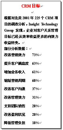 眾所周知,客戶關(guān)系管理是一種經(jīng)營管理戰(zhàn)略和理念,而并非是某種信息技術(shù)。在具體操作中,是通過一系列的戰(zhàn)略設(shè)定、流程優(yōu)化與改造、經(jīng)營職能的重新設(shè)計和技術(shù)輔助手段等整合的過程而實現(xiàn)的。很多企業(yè)在規(guī)劃和實施客戶關(guān)系管理過程中都曾有過各種各樣的困惑,通常包括:無法清晰界定客戶關(guān)系管理目標;實施客戶關(guān)系管理后在企業(yè)營運和操作層面并沒有實際落實;企業(yè)開展了一系列的工作,而似乎客戶并不完全認可,收效甚微;組織和員工在接受理念和管理及制度上的轉(zhuǎn)變存在抵觸等等。