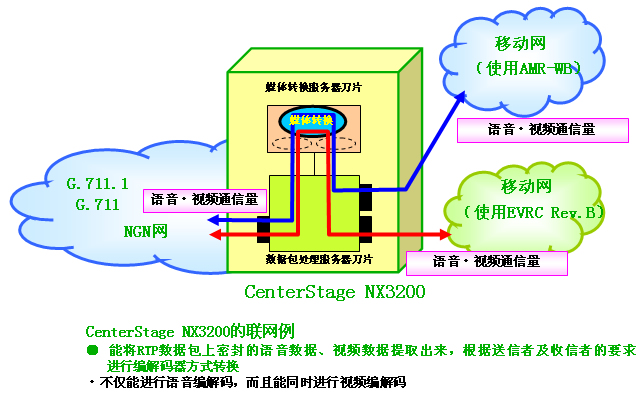 NX3200(以下簡(jiǎn)稱「NX3200」)」上,內(nèi)置了行業(yè)首例運(yùn)營(yíng)商級(jí)寬帶編解碼轉(zhuǎn)換功能。本裝置迅速對(duì)應(yīng)了ITU-T(注2)制定的國際標(biāo)準(zhǔn)G.711.1(注3)等寬帶編解碼器標(biāo)準(zhǔn),在運(yùn)用移動(dòng)網(wǎng)、固定網(wǎng)的各種語音編解碼器及視頻編解碼器之間,能同時(shí)進(jìn)行大容量通信。本產(chǎn)品即日起開始銷往市場(chǎng)。
