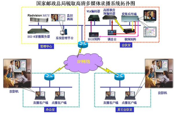 國家郵政總局為國家政府機構(gòu),主要負(fù)責(zé)郵政業(yè)的發(fā)展戰(zhàn)略、發(fā)展規(guī)劃和有關(guān)政策等諸多職責(zé)。由于機構(gòu)的特殊性,一些政策、法規(guī)、信息傳播、突發(fā)事件等日常工做必須及時、準(zhǔn)時、快速、準(zhǔn)確來完成,所以建設(shè)了視頻會議系統(tǒng)。與此同時,為了能夠更好、更準(zhǔn)確、更及時、更完整的把會議內(nèi)容所包括的相關(guān)信息及時傳播與記錄,也增加了可視化信息的傳播與記錄系統(tǒng):深圳銳取多媒體錄播系統(tǒng)。