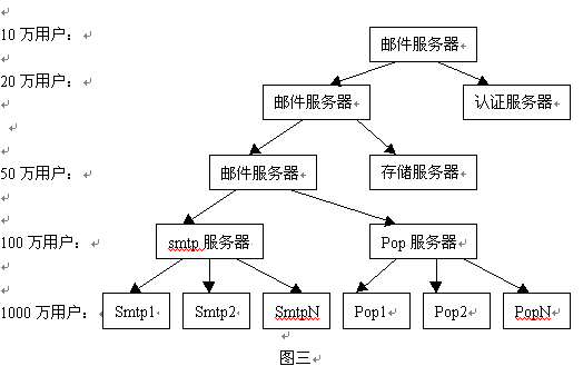 這種結(jié)構(gòu)所支持的用戶量有比較大的靈活性。用這種結(jié)構(gòu)的系統(tǒng)可以支持到幾百萬以上的用戶。最為著名的Hotmail站點所采用的就是多臺機器分布式并行操作的方式,目前其用戶數(shù)已經(jīng)達到近3000萬。通過多機集群技術(shù),使運營商能夠在處理海量郵件的發(fā)送、管理和存儲。根據(jù)負載流量管理,運營商可以掌握系統(tǒng)的負荷狀況,并根據(jù)業(yè)務(wù)發(fā)展需求來添加服務(wù)器。這種系統(tǒng)可以支持上百萬乃至上千萬的用戶。