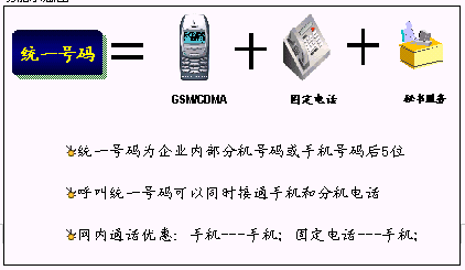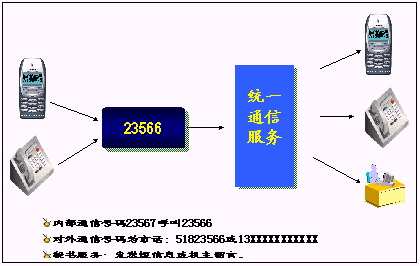 鐵路內(nèi)部員工可以統(tǒng)一所有的通信工具,只使用一個(gè)號(hào)碼,一次呼叫便可以完成通信,使通信更加簡(jiǎn)單、可靠。可以實(shí)現(xiàn)換機(jī)換網(wǎng)不換號(hào),用戶獲得一個(gè)終身的聯(lián)系號(hào)碼,用戶無論更換任何通信工具,聯(lián)系號(hào)碼和方式不會(huì)改變。例如:在路局領(lǐng)導(dǎo)找下屬的時(shí)候,只需要撥打他的統(tǒng)一號(hào)碼,便可以直接找到他。不必考慮他是否在外出還是在辦公室,是否更換了手機(jī)號(hào)碼。統(tǒng)一號(hào)碼就像他員工號(hào)碼,始終不變,即撥即通!