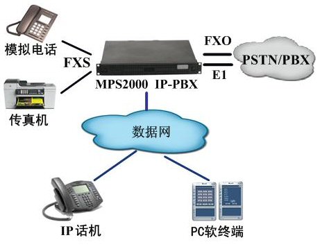 對(duì)于終端采用IP話機(jī)或PC軟電話,MPS2000 IP-PBX提供IP接口接入數(shù)據(jù)網(wǎng),可實(shí)現(xiàn)企業(yè)內(nèi)部免費(fèi)通話。